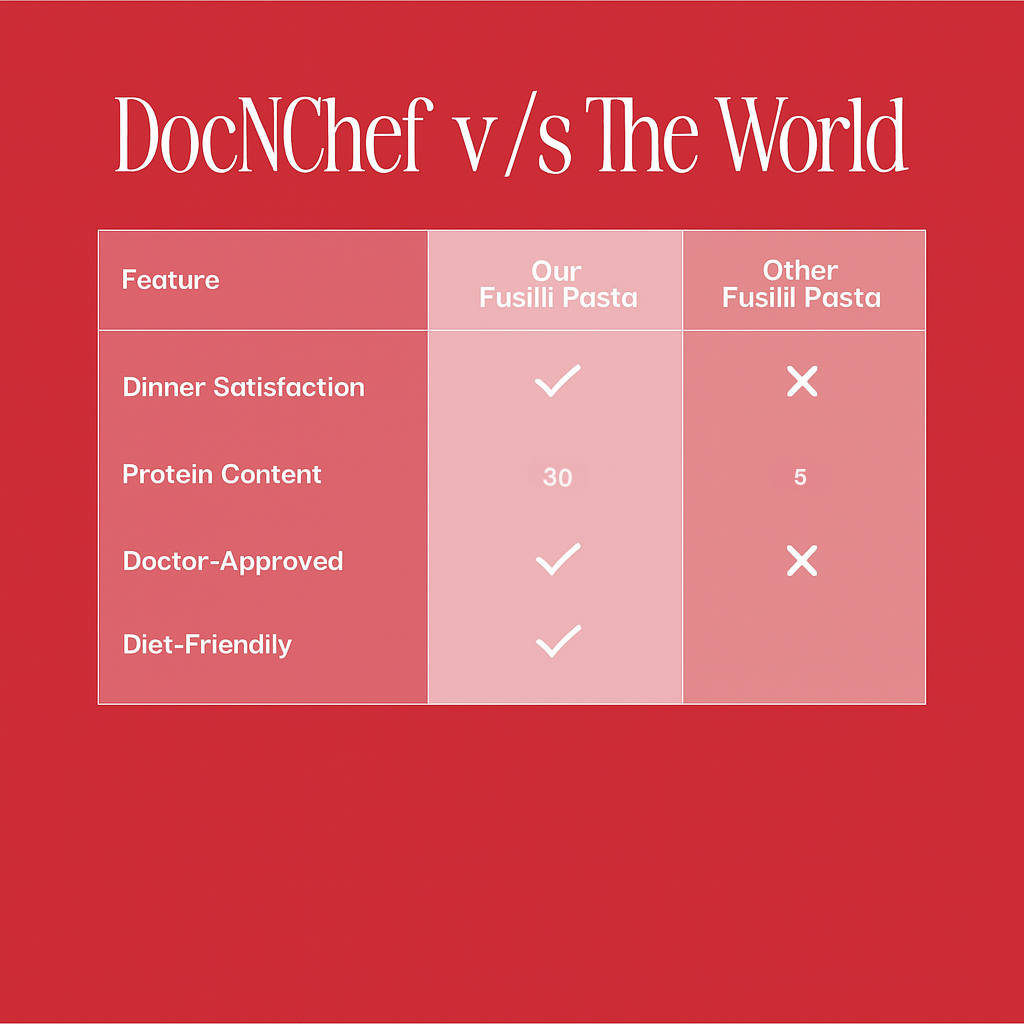 DocNChef Protein Fusilli packs 30g of protein per serving in every delicious bite — no shake, no sludge, just real food that hits the spot. Each packet comes with a gourmet spice sachet and is ready to eat in under 10 mins. Whether you’re lifting heavy or chasing a leaner you, this pasta is made for fitness lovers who are done pretending protein shakes taste good.